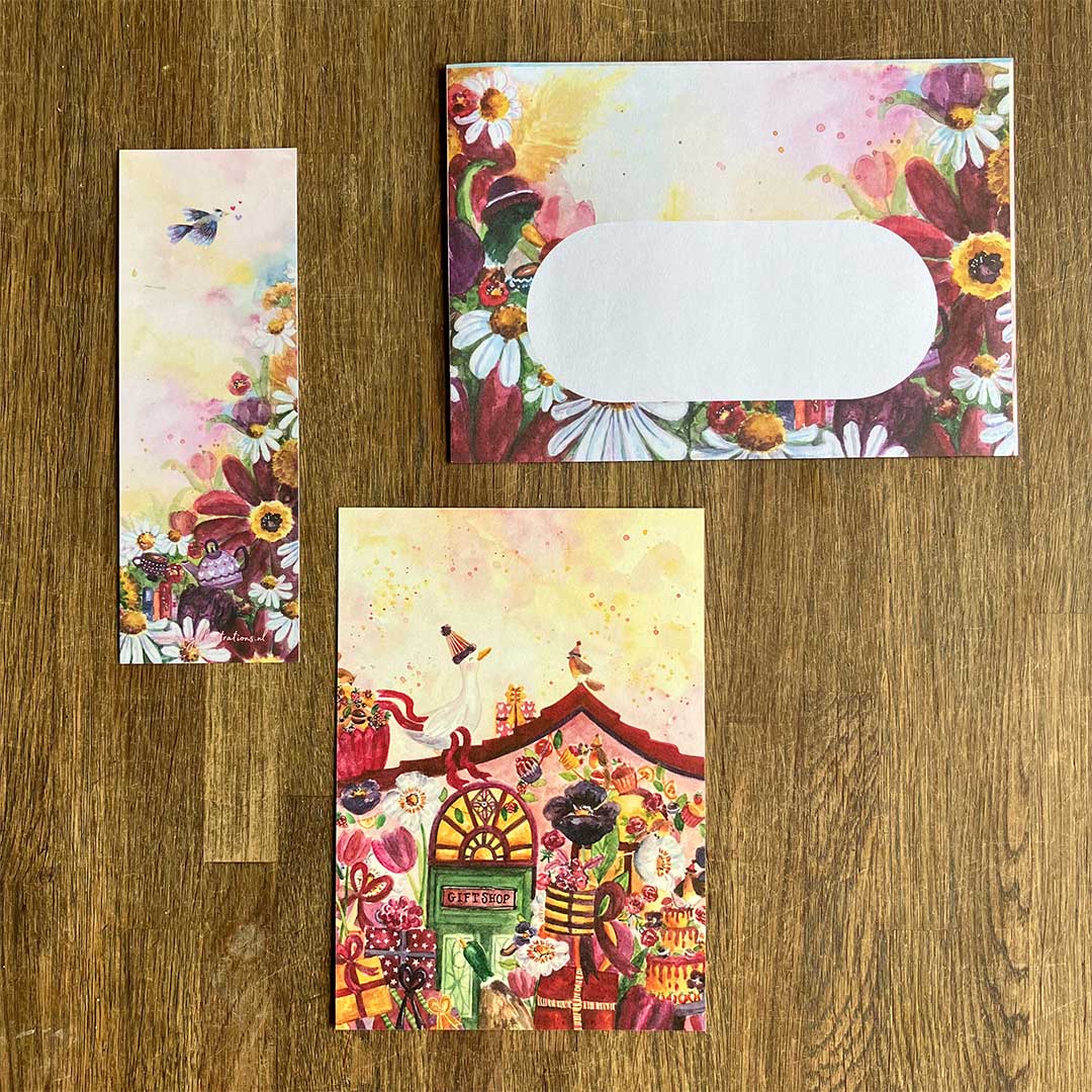 Net zoals bij iedere collectie heeft Romy verschillende papierwaren in het assortiment. Kaarten zijn hier de essentie van. Ik zou bijna zeggen dat de rest hierop gebaseerd is. Met een tiental ontwerpen zit er vast iets voor je tussen. Daarbij horen natuurlijk ook bijpassende sluitzegels, waarbij de meeste ontwerpen zijn opgenomen. Ook zijn er twee notitieblokken en enveloppen beschikbaar, voor iedere serie een. Net als een boekenlegger, wat enorm passend is bij het thema van de collectie.