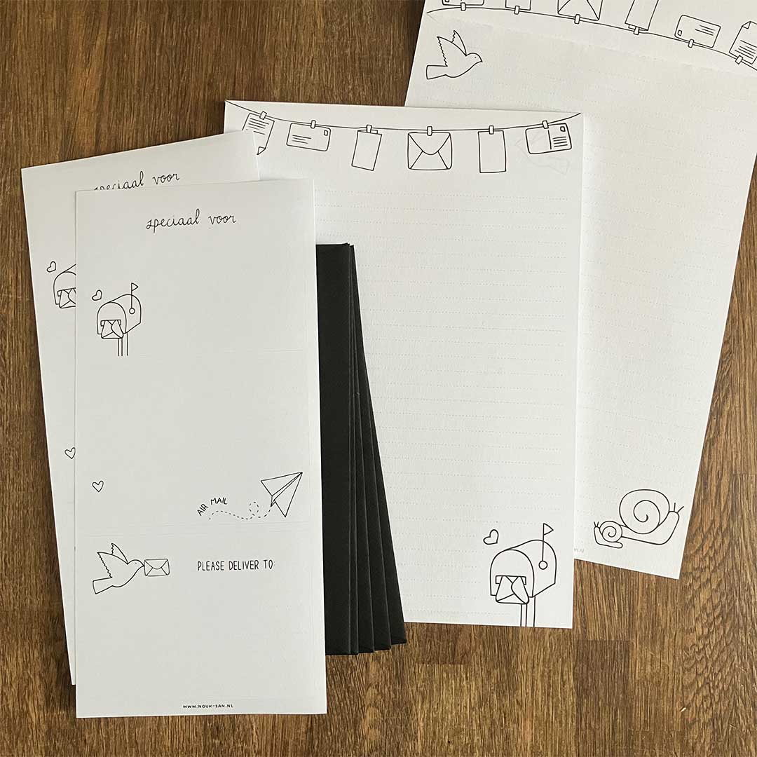 Dit notitieblok is onderdeel van de serie ‘post’. Ik heb echte post altijd prachtig gevonden van jongs af aan. In mijn collectie zijn daarom ook veel producten te vinden voor dit thema. Deze ontwerpen zijn echter ook gericht op post met de illustraties. De producten zijn in zwart en wit zodat ze nog te decoreren zijn naar eigen invulling.